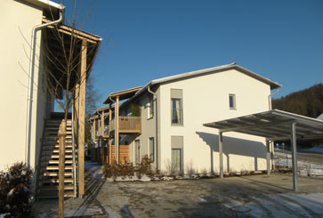 | Auf dem Baugrundstück befand sich ein Wohnhaus mit 6 Wohnungen, Baujahr 1950. Die Neubauten wurden in 2 Abschnitten realisiert. Der 1.BA wurde neben dem bestehenden Gebäude errichtet. Nach Umzug der Bewohner und Abbruch des Bestandes wurde ein Zweifamilienhaus als 2.BA gebaut. Die Aufenthaltsräume liegen auf der ruhigen Gartenseite, die Erschließung und Nebenräume auf der Seite der Kreisstraße. Alle Wohnungen im EG sind barrierefrei. |