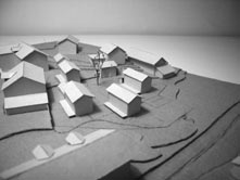 ergänzen. Beeinflußt durch die umgebende Bebauung verläuft die Firstrichtung der neu geplanten Gebäude