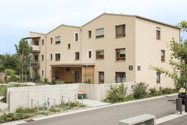 Die städtebauliche Anordnung der neuen Baukörper um zwei öffentliche Plätze ist im Vorfeld über einen Bebauungsplan durch die Stadt Ebersberg geregelt worden, der auf dem Ergebnis eines Plangutachtens aufbaut. Die Neubauten wurden in zwei Bauabschnitten realisiert, um den Bestandsmietern, die im Quartier verbleiben wollten, ein „Zwischenquartier“ bis zum Umzug in den Neubau zu ersparen. Insgesamt entstanden so 32 Wohnungen in verschieden Größen und Wohnungstypologien für unterschiedliche Zielgruppen (Familien, Alleinerziehende, Senioren). Die Wohnungen entsprechen den Wohnraumförderbestimmungen in Bayern und sind altengerecht bzw. barrierefrei ausgeführt. |