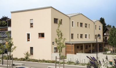 Die städtebauliche Anordnung der neuen Baukörper um zwei öffentliche Plätze ist im Vorfeld über einen Bebauungsplan durch die Stadt Ebersberg geregelt worden, der auf dem Ergebnis eines Plangutachtens aufbaut. Die Neubauten wurden in zwei Bauabschnitten realisiert, um den Bestandsmietern, die im Quartier verbleiben wollten, ein „Zwischenquartier“ bis zum Umzug in den Neubau zu ersparen. Insgesamt entstanden so 32 Wohnungen in verschieden Größen und Wohnungstypologien für unterschiedliche Zielgruppen (Familien, Alleinerziehende, Senioren). Die Wohnungen entsprechen den Wohnraumförderbestimmungen in Bayern und sind altengerecht bzw. barrierefrei ausgeführt. |